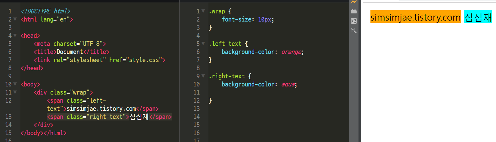 vertical-align이라는 속성은 한줄에 있는 인라인 요소들의 수직 정렬을 맞춰주는 역할을 하는데 기본 값으로 baseline값을 갖는다. 그렇기 때문에 아래와 같이 right-text의 폰트 사이즈를 작게 줄였을때 위치가 left-text의 baseline에 맞춰지게 되는것이다.