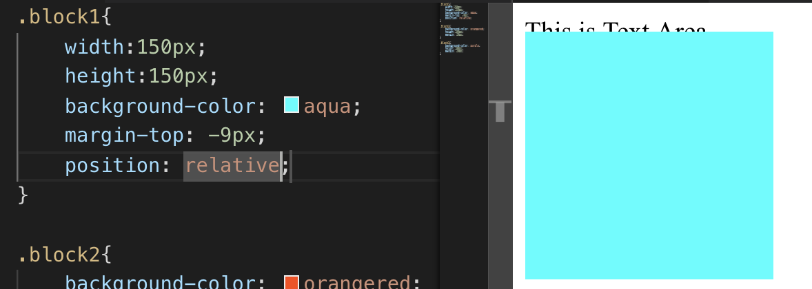 보면 인라인 요소에 파란색 박스를 마진 탑을 음수값을 줘서 두개가 겹치게 해봤다.