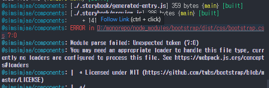 프로젝트에 summernote 에디터를 붙이는 도중 이 에디터가 내부적으로 부트스트랩을 사용해서 모듈을 설치하고 진행하던 중 bootstrap/dist/css/bootstrap.css를 로더가 처리하지 못하는 이슈가 발생했다.