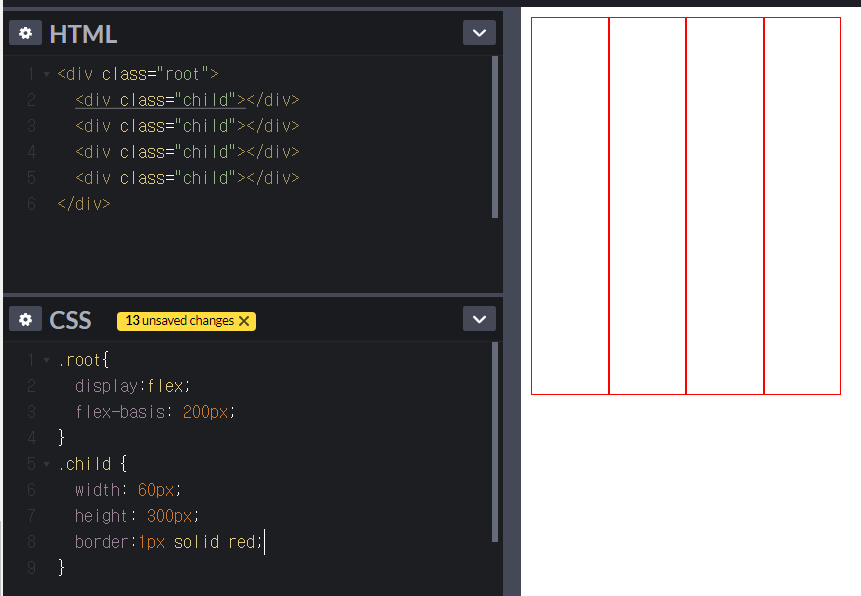 이런식으로 한번더 flex로 감싸줘야한다. 두겹의 flex container가 필요하다. (정확히 어떤 원리에 의해서 두겹의 flex container일떄는 정상 동작하는지 설명되어있지 않다. 혹시 아시는분은 댓글 달아주시면 감사합니다.)