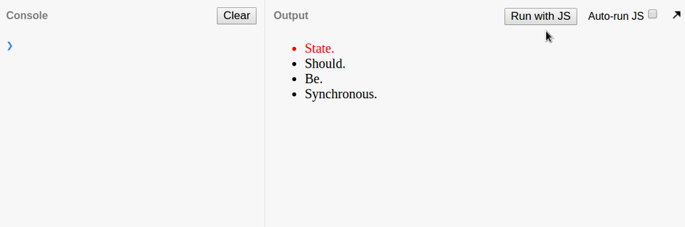 setState는 비동기로 동작하는것처럼 보이지 않기 때문에 위와 같이 가끔씩 미묘한 버그를 일으킵니다. 그리고 이런 버그는 왜 생기는지 찾기도 힘들죠.